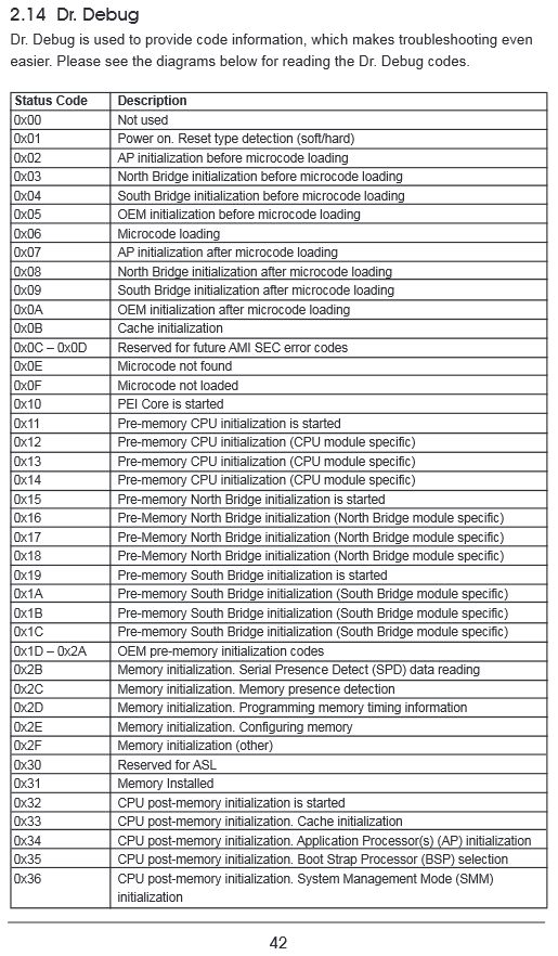 Ich habe hier einen Acer Aspire M5811, der nicht mehr hochfuhr. Das Problem war der Speichercontroller auf dem Mainboard. Ich hab jetzt ein ASRock P55 Extreme gekauft und bin auch von 3 2GB RAM Riegeln auf 2 4GB Riegel umgestiegen, damit das ganze dann im Dualchannel läuft. Die Riegel sind Ok, memtest findet keine Probleme, jedoch fuktionieren sie nicht im Dualchannel, sondern nur einzeln. Dr Debug gibt, wenn man beide im Dualchannel aufsetzt den Fehlercode 16 aus, jedoch hat der keinen Wert im Handbuch. Verbaut sind diese Riegel: http://geizhals.de/corsair-xms3-dimm-kit-8gb-cmx8gx3m2a1333c9-a536423.html