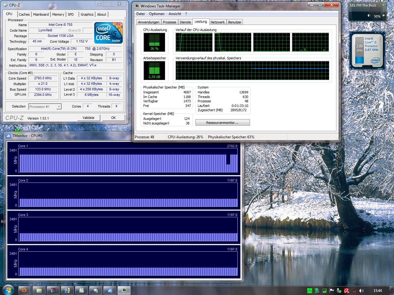 Getestet hab ich mit Prime mit einem Thread. Zur Überprüfung der Taktung hab ich CPU-Z, T-Monitor64 und das Sidebar Tool "Intel Turbo Boost Technologie Monitor" verwendet.