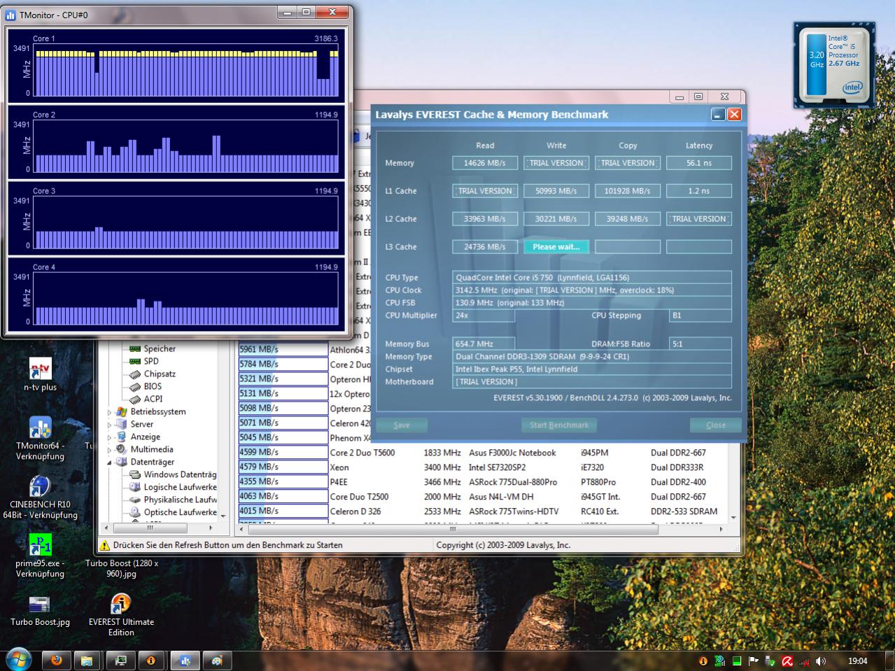 Da beim CB Test des Core i5-750 zu lesen ist, dass dort das gleiche Problem auftrat, und der Turbo Boost erst im Bios aktiviert werden musste, dachte ich, dass er bei mir ebenfalls im Bios deaktiviert ist, allerdings stand hinter "Intel (R) TurboMode tech" schon "Enable".