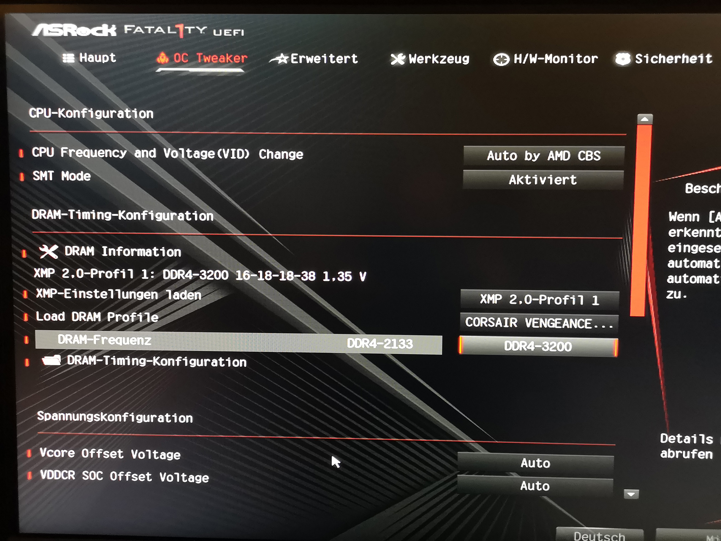 ich habe ein Asrock X470 Gaming K4 Mainboard mit einem Ryzen 2700k und 2x G.Skill Ripjaws F4-3200C16D-16GVK