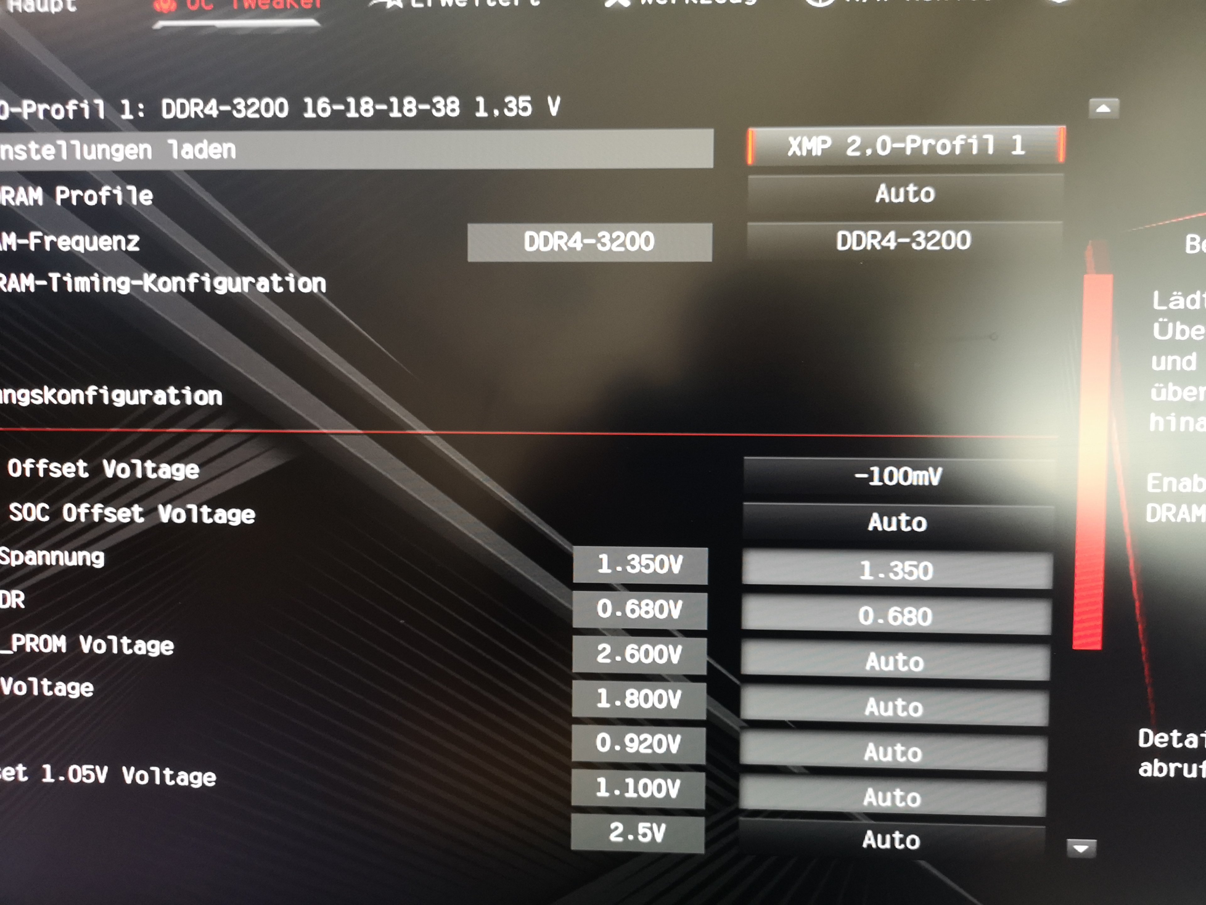 Egal was ich mache. Er übernimmt es nicht. Hab das XMP Profil mit 1.40V versucht. Geht nicht.