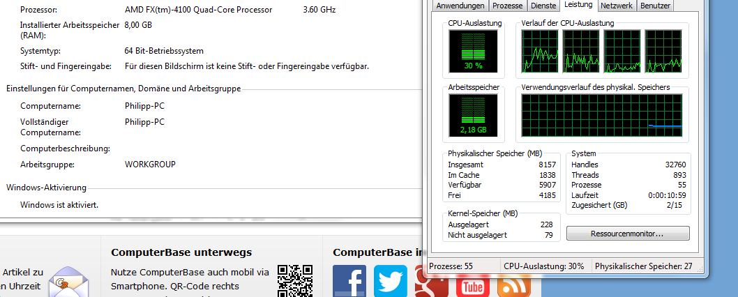 Also es schwankt ein wenig. Mal stehen da 4 Gb im Task-Manager, mal 8 Gb o.O