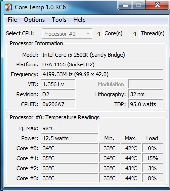 wenn du mit fixed voltage übertaktest, ist nur der Vcore interessant. VID und sowas interessiert dich nicht. Sandy Bridge ist sehr kühl, idel wäre es, wenn die temps in den 50ern bleibt beim spielen. Bei prime dürfens schonmal über 60 Grad werden. Aber beim spielen sollte es locker unter 60 Grad bleiben mit den Einstellungen und halbwegs gutem kühler. 4,3 ghz ist doch supi mit 1,25V.