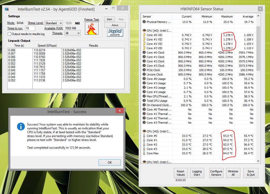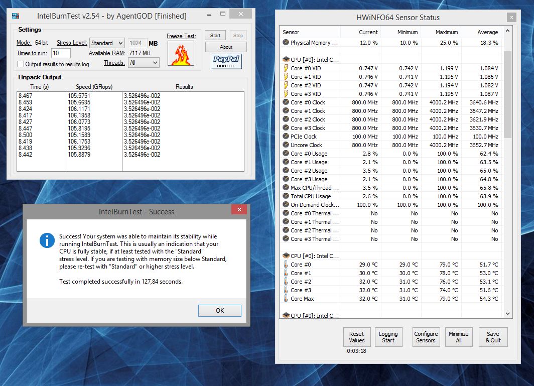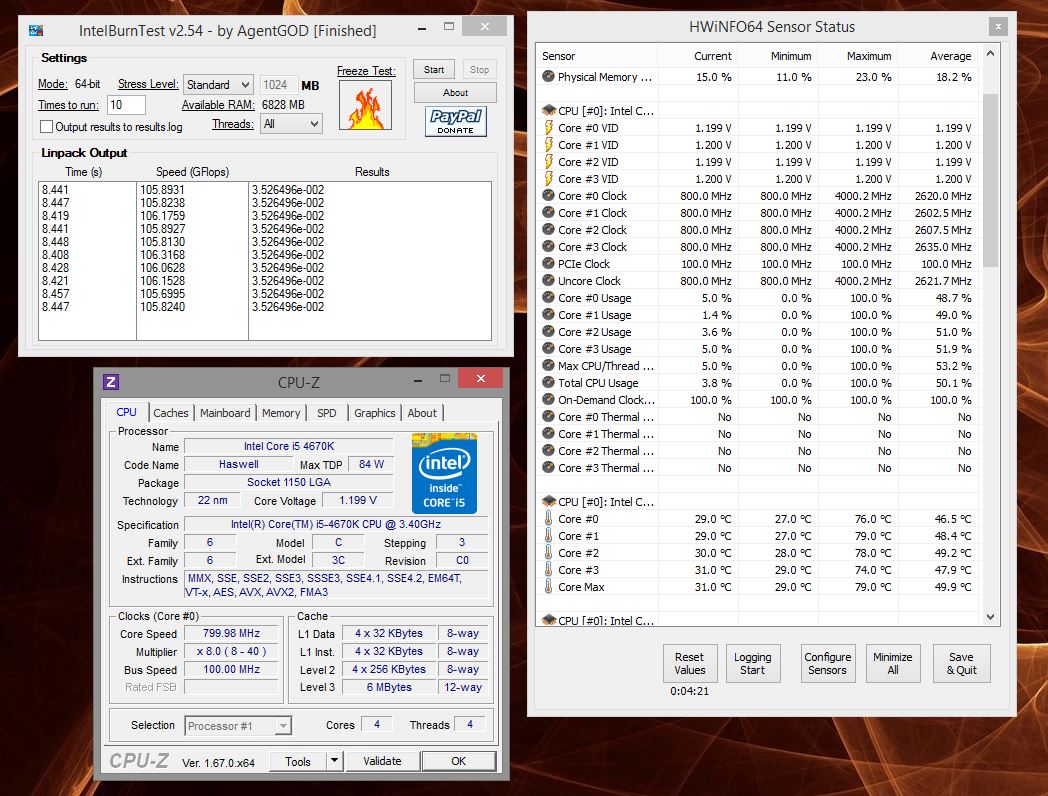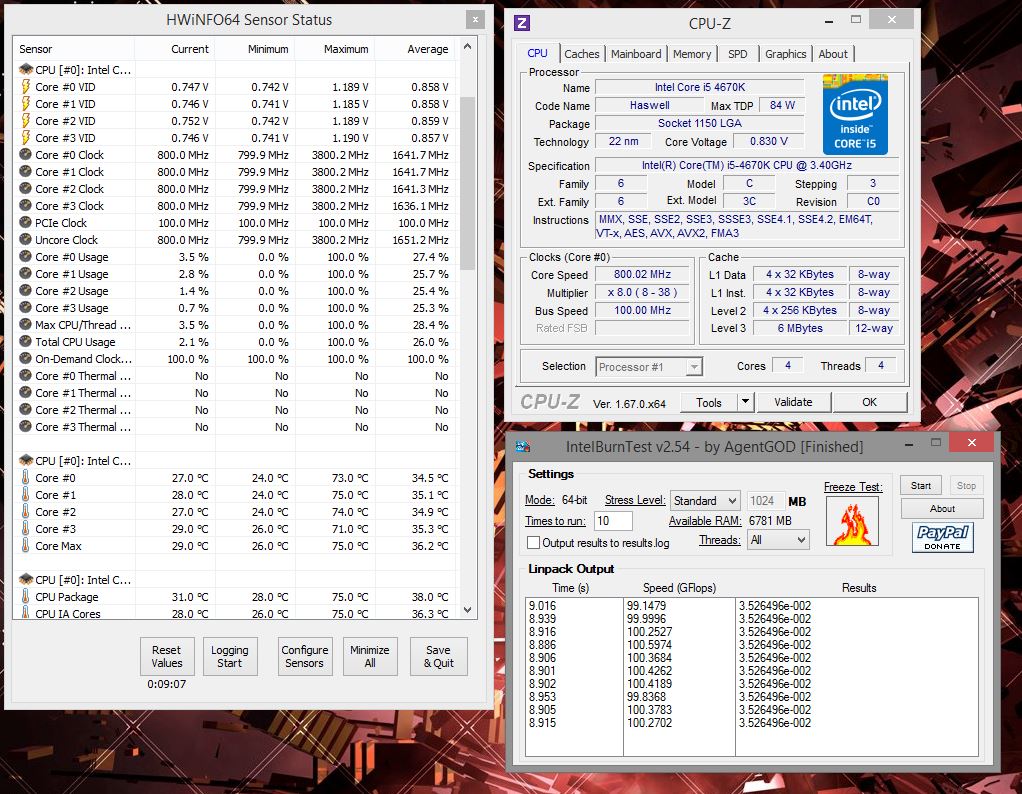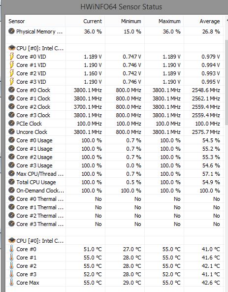 da ich bisher nur AMD-Systeme meine Eigen nennen durfte und jetzt auf Intel umgestiegen bin habe ich mal eine allgemeine Frage. Bisher ist die CPU noch nicht übertaktet und läuft im "Standardmodus". Meine Frage betrifft den Turbomodus des I5 4670K, dieser sollte ja maximal auf 3,8GHz takten. Im Prime95-Test geht er aber maximal auf 3,6GHz. Ist das korrekt? über das Programm HWINFO64 konnte ich sehen das die Kerne in BF3 mal im Maximum von 3,8GHz waren, ich weiß aber nicht wie lange das der Fall war.