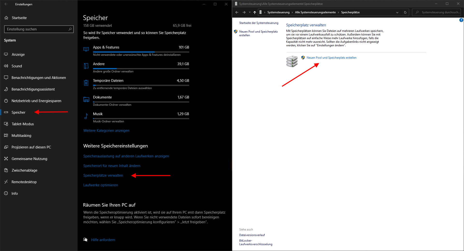 Wenn es so aussieht wie im Bild rechts, dann ist kein Speicherpool eingerichtet -> also alles gut.