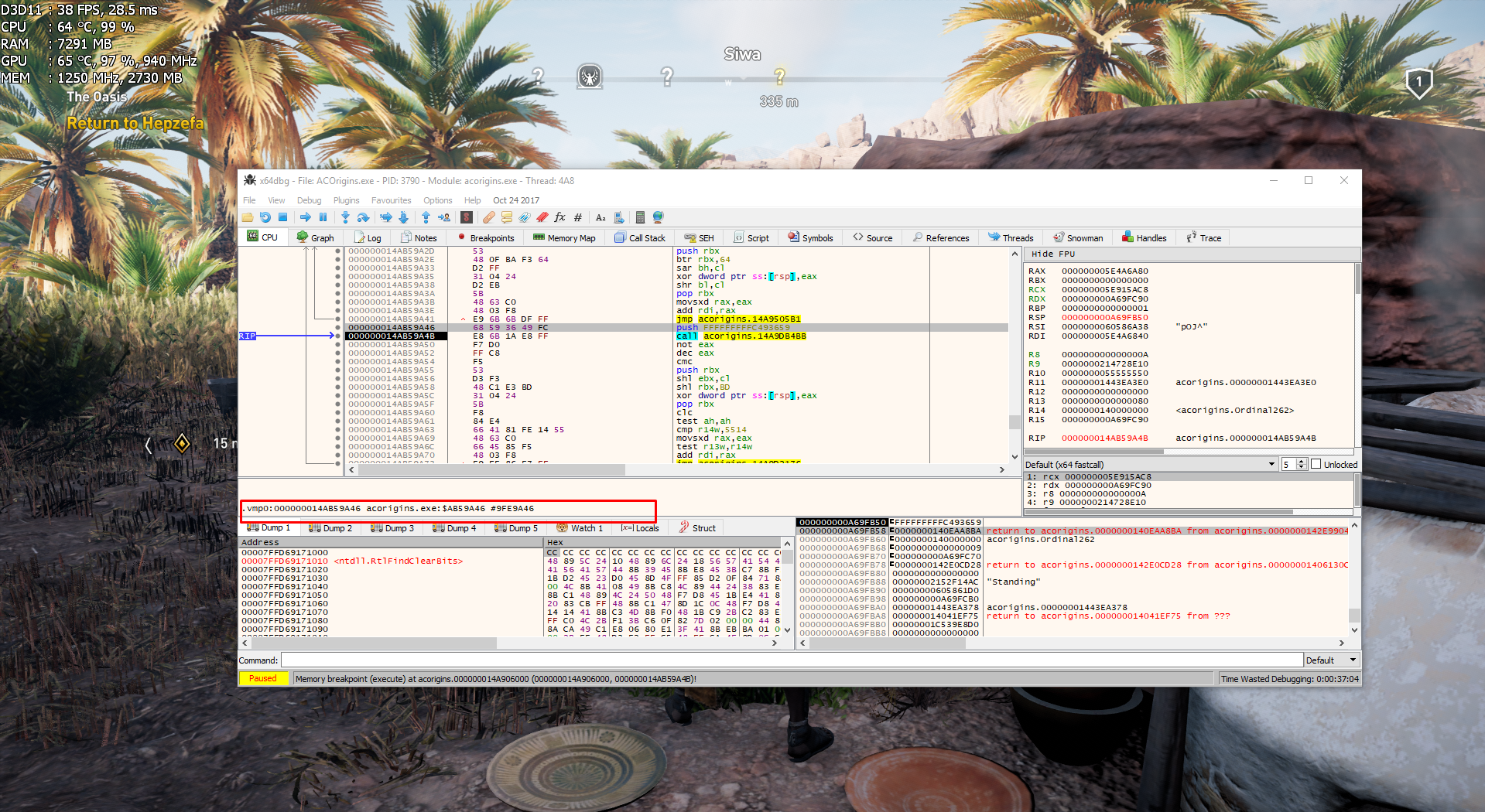 Auf dem Bild sieht man, dass das Spiel während des spielens dauerhaft auf den VMProtect Sektor (.vmp0) zugreift, was die CPU Leistung beeinträchtigt.