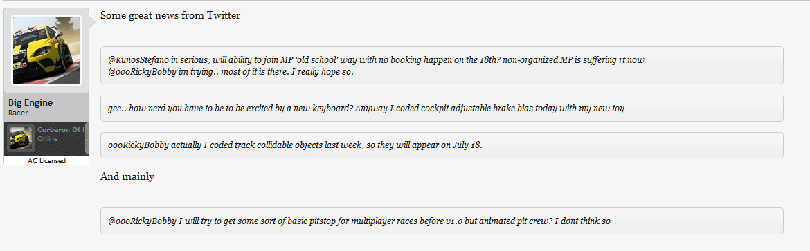 Pitstops kommen doch, weil alle so genervt haben, gut keine Animation bei V1.0 dabei aber irgendwann später.