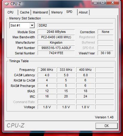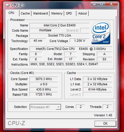 Hab mal drei Bilder von Cpu Z angehängt.