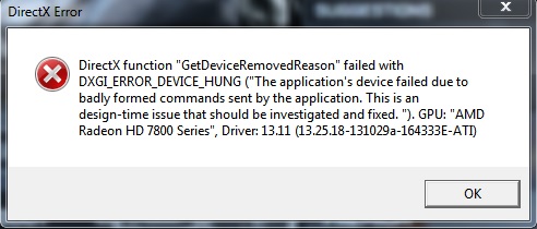 Leider stützt mit das Game so alle 10-60 Minuten mit folgendem Fehler ab: