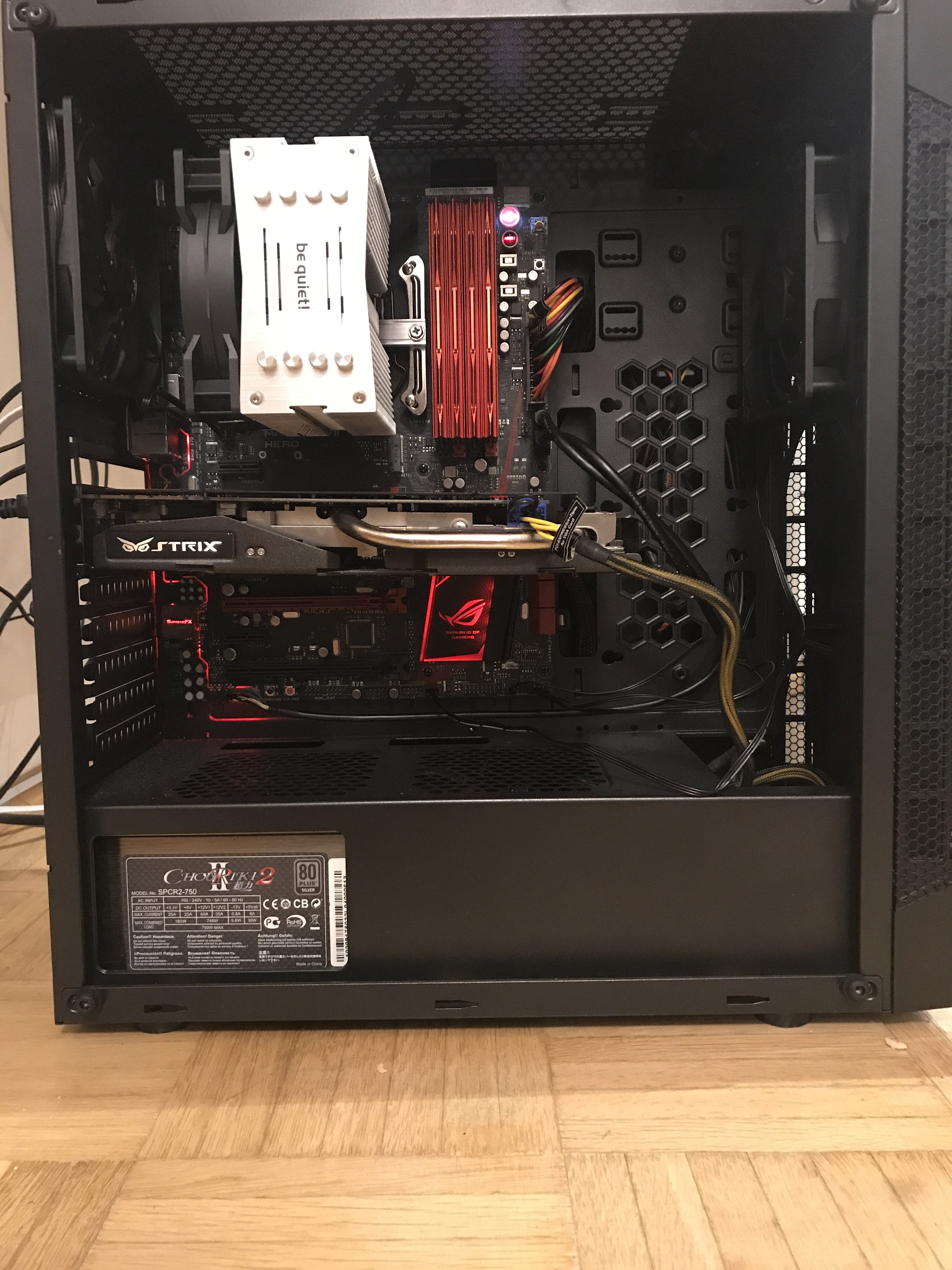 Der airflow geht von hinten nach vorn und ab heute Nachmittag sollen zwei weitere Lüfter die Luft vorne direkt bei der Karte absaugen.