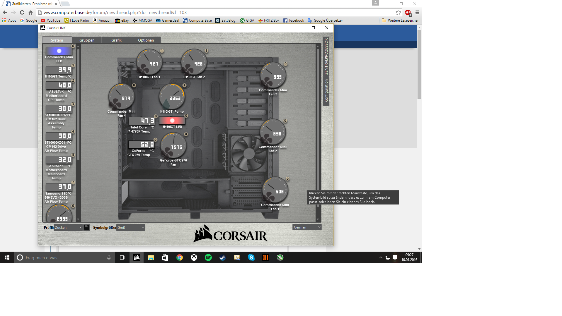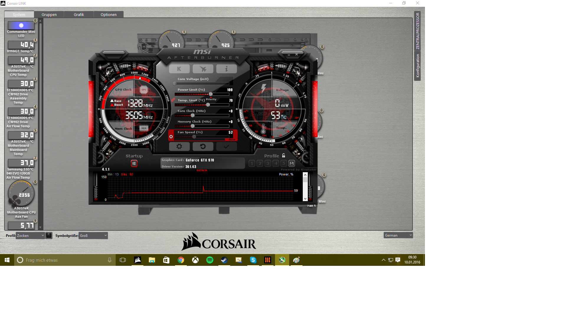 dringendes Problem, seit 5 min laufen meine Lüfter meiner GPU auf 100%. Ich hab heute nichts umgestellt oder so was in der Art. Ich hab nur seit ich meinen PC zusammengebaut hab bei MSI Afterburner eine konstante in die Lüfterregelung eingebaut. d.h. wenn sie 63 °C hat dann laufen die Lüfter mit 63 %. Aber im MSI Afterburner steht halt drin das die Lüfter mit den 52 % der Temperatur laufen. Aber mein Corsair Link sagt das sie mit 100 % laufen und genau so hört es sich auch an.