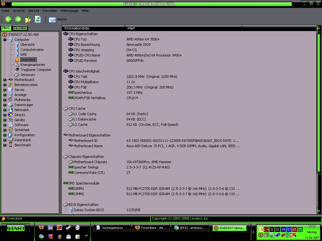 Das prob ist das er als 3400+ erkannt wird im Bios sowie in Everest.