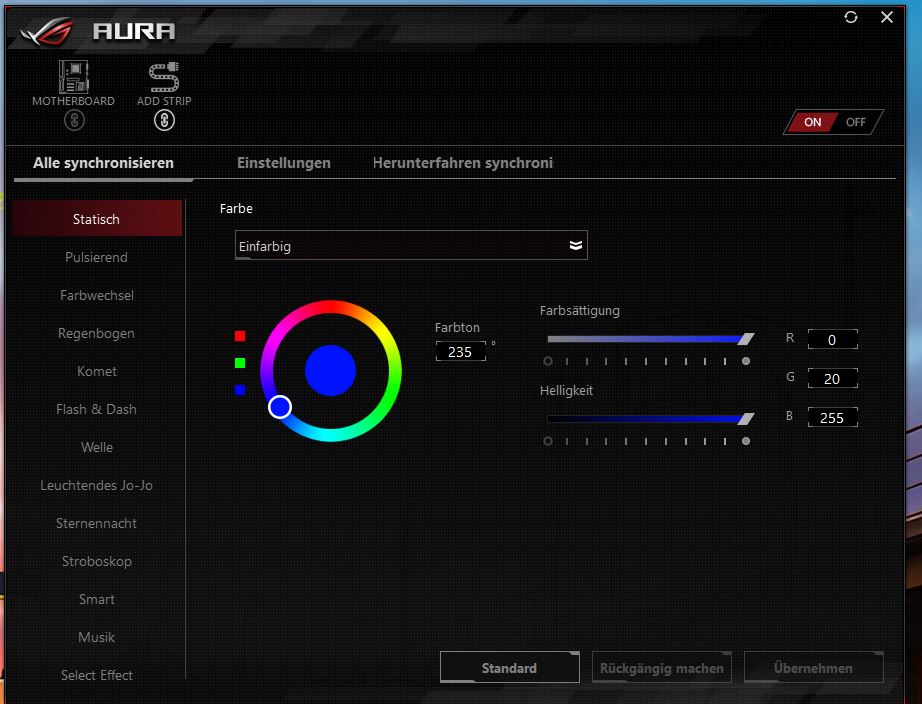 Meine Frage wäre also, gibt es eine alternative Möglichkeit ohne die ASUS Aura Armoury Crate Software einmalig eine Farbe ins Aura EEPROM zu schreiben?