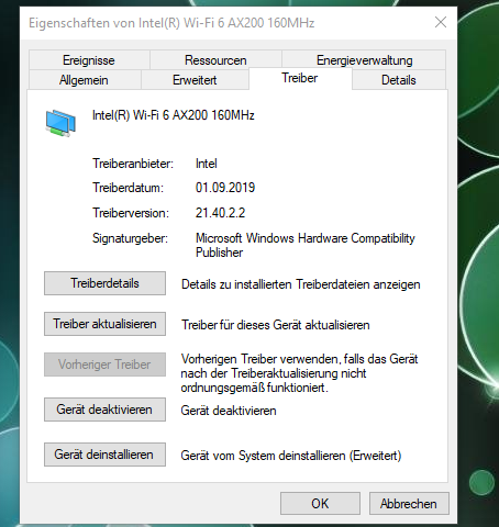 Driver Description: Intel(R) Wi-Fi 6 AX200 160Mhz