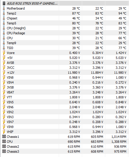 Allerdings bin ich etwas stutzig über die Temperaturen der TMPIN4, die 90 Grad heiß wird (gerade in diesem Moment, wo kein Prime oder Spiel läuft).