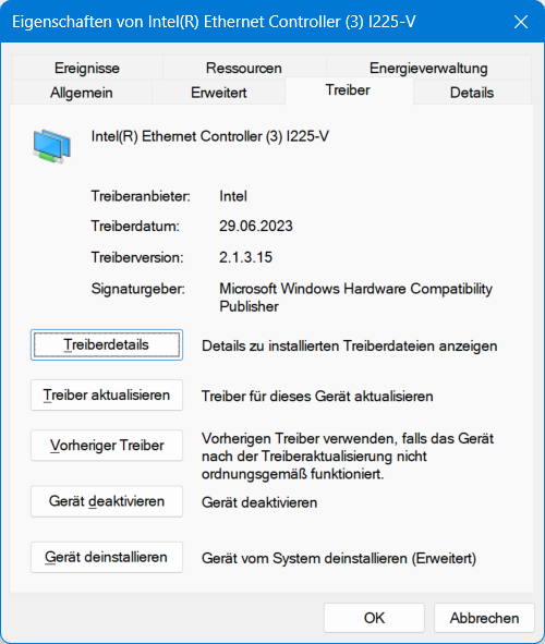 Was ich seltsam finde ist folgendes: Ich wollte eine größere Datei im Netzwerk kopieren und war dabei auf 12MB/s begrenzt. Um das etwas zu beschleunigen, habe ich die Intel I-1225V deaktiviert und mich mittels WLAN-USB Stick verbunden und somit zumindest ca. 30MB/s gehabt. Danach habe ich vergessen die Intel NIC wieder zu aktivieren und erstmal über WLAN weitergearbeitet. Als ich die Intel NIC ein paar Tage später wieder aktivieren wollte, war diese nicht mehr als Netzwerkadapter aufgeführt. Nach einem Neustart war der Adapter wieder da, ich hab ihn aktiviert und hatte eine 1GBit Verbindung.