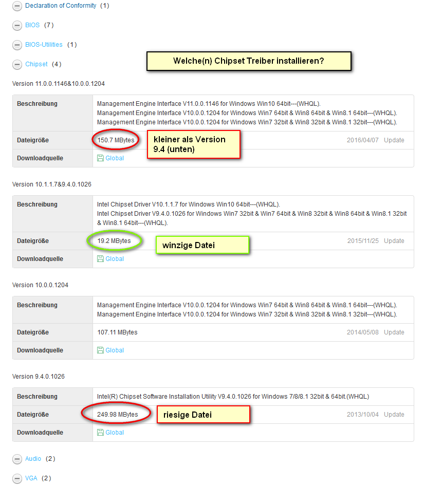 Auf der ASUS Seite finde ich eine Vielzahl von Treibern (z. B. 7 x BIOS Treiber) – sollte ich immer nur den letzten installieren?