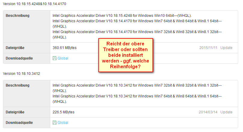 Manchmal sind die Nummerierungen aber nicht durchgehend bzw. mal ist die Treiberversion riesig, mal winzig, dann wieder riesig (siehe Bild).