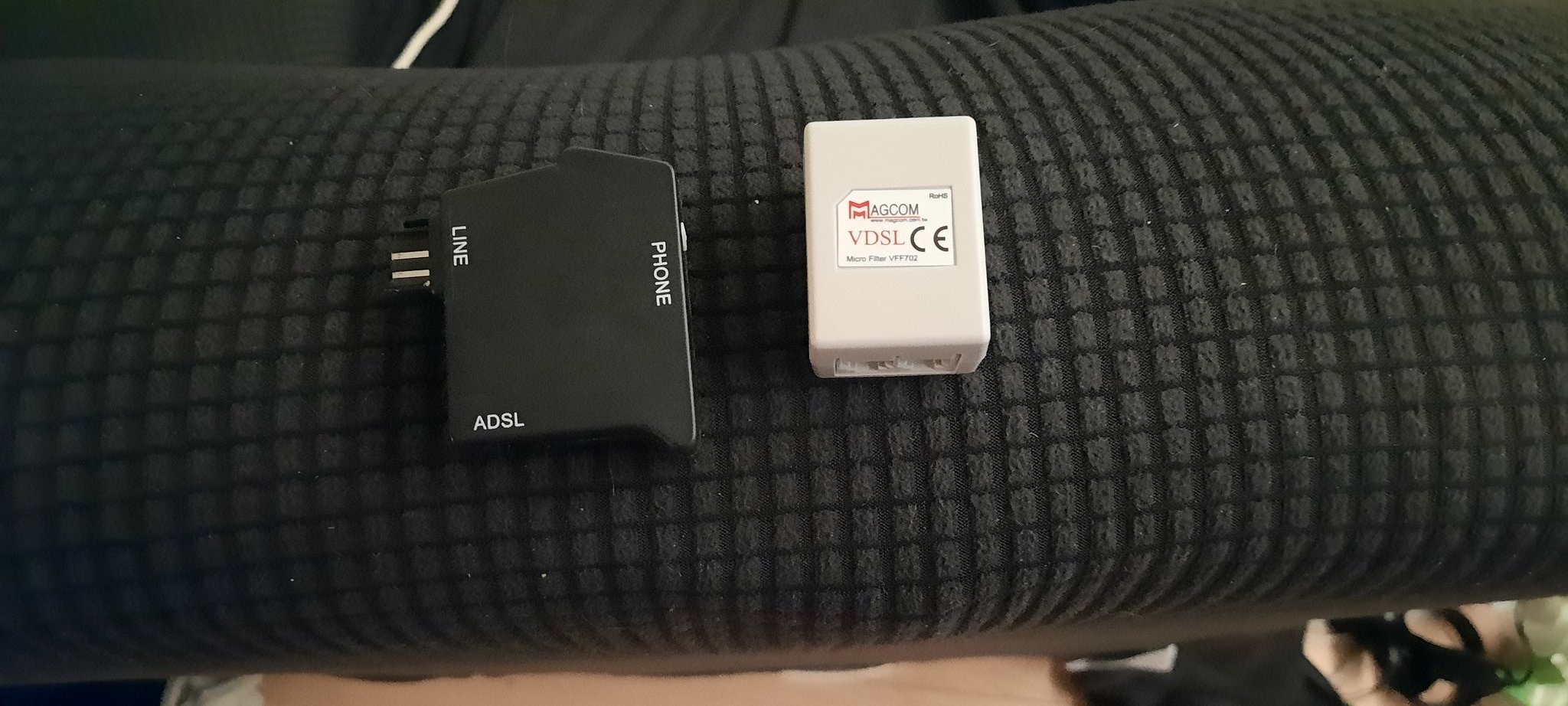 Der schwarze ADSL-Splitter und der graue VDSL-Splitter enthalten beide Frequenzweichen, die das DSL-Signal stören. Die Verwendung von beiden Splittern in Reihe, wie in deinem zweiten Bild, ist von ASUS laut Anleitung auch nicht vorgesehen.