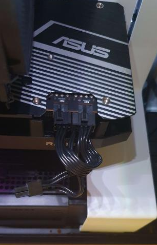 Auf dem Bild ist zu sehen, das 1 Kabel (mit 2 Steckern) vom Netzteil zur Grafikkarte geht, man sollte 2 getrennte Kabel nehmen um die Grafikkarte anzuschließen. So: