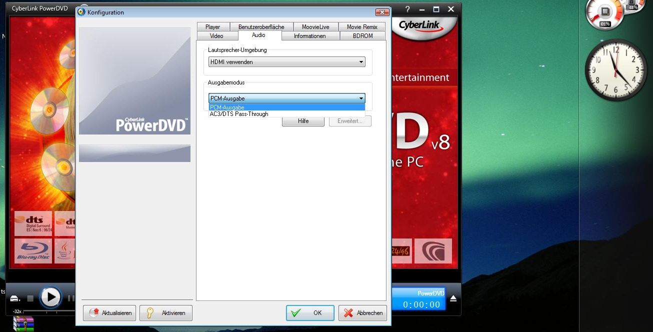 Bei PowerDVDultra kann man bei Audio HDMI wählen wie man auf meinem Foto sieht.