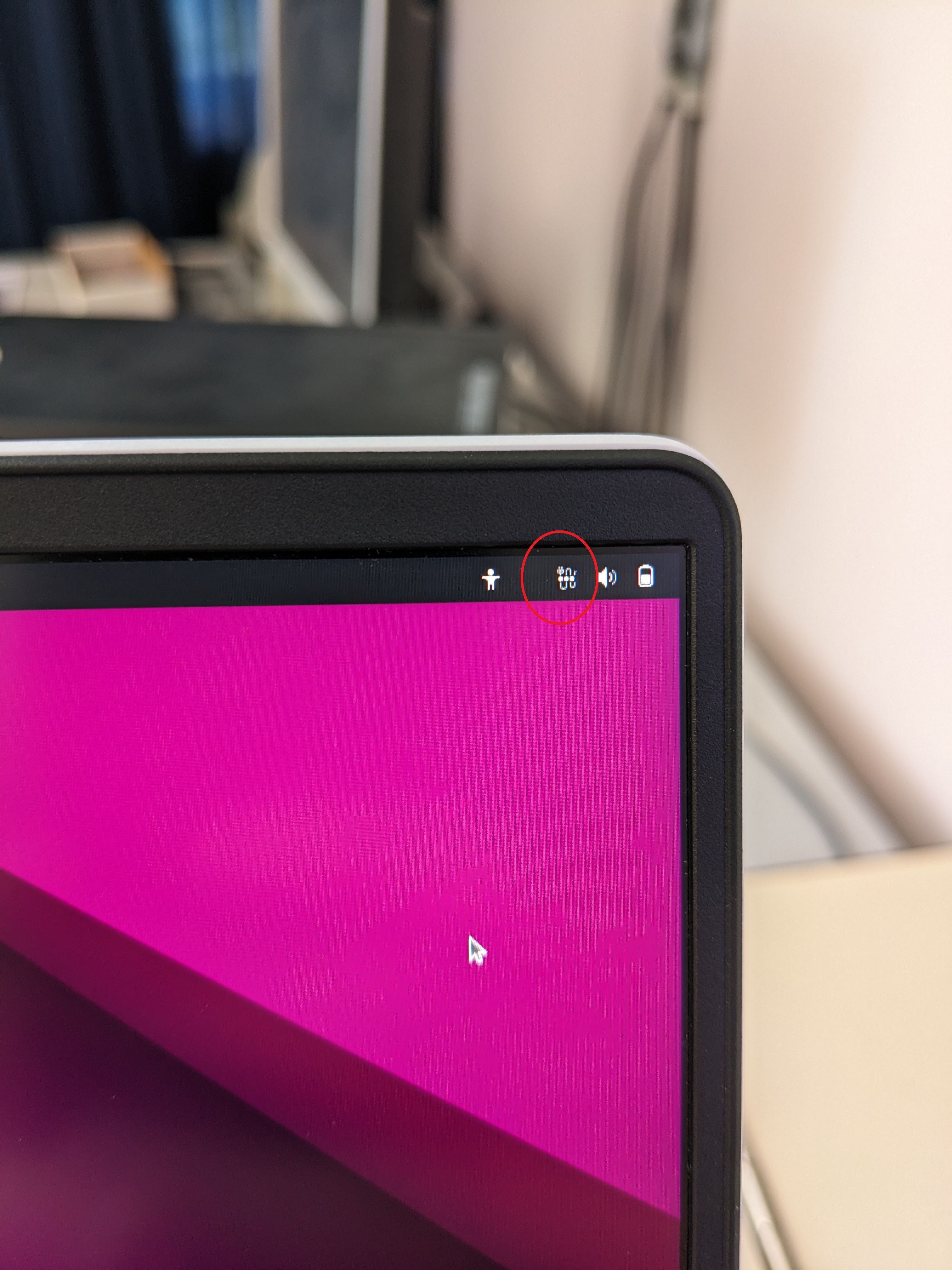 Habe soeben ubuntu über einen Stick laufen lassen. Der linke USB-C Anschluss gibt auch hier kein Bild auf einen externen Bildschirm aus. Es erscheint nur ein kleines Symbol oben rechts und verschwindet dann auch wieder (siehe Anhang).