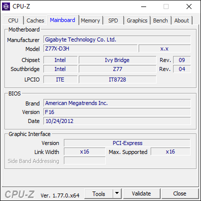 Mainboard: Gigabyte Z77X-d3h rev 1.0