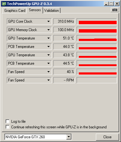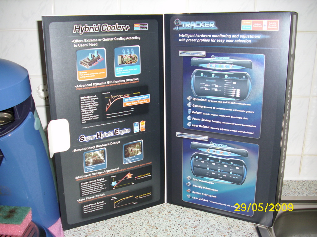 Die Taktraten der alten 65nm Fertigung sind vom Werk aus konservativ gewählt und liegen mit 576Mhz Core, 1242Mhz Shader und 999Mhz VRam bei 1,15Volt auf dem Niveau der Vorgaben von Nvidia.