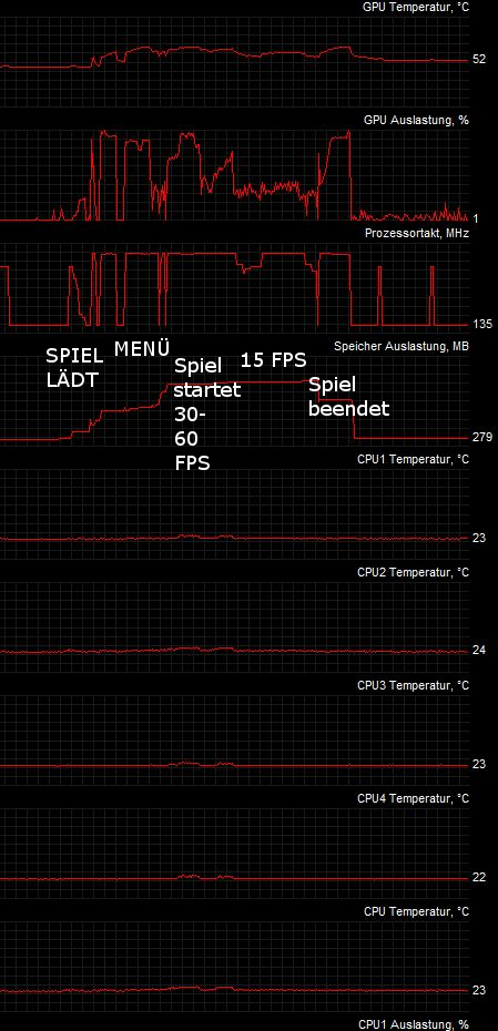 Kann es sein, dass du thermische Probleme hast? Also 23 Grad CPU-Temperatur von MSI-Afterburner ist unrealistisch.