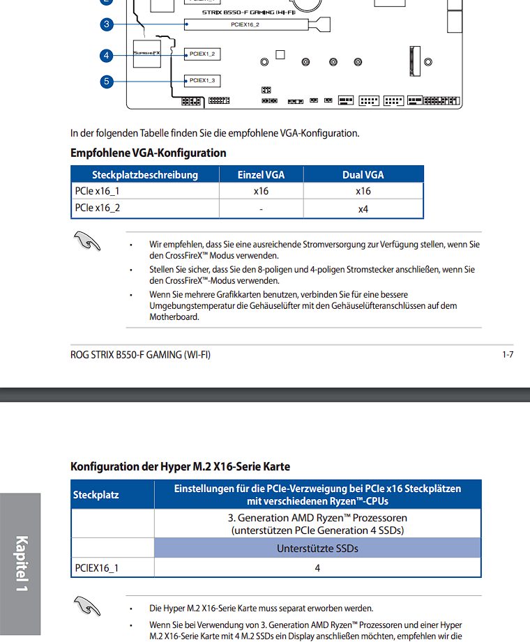 Hallo Ich habe eine Frage bezüglich einer HYPER M.2 X16 GEN 4 CARD. Aktuell habe ich ein Asus asus rog strix b550-f gaming wifi. In den beiden NVME Slots sind jeweils 2 Nvme verbaut. Nun habe ich auf der Asus Hyper M.2 2 WD 850x verbaut und sie in PCi Steckplatz 2 gesteckt. Es wird aber nur 1 im Bios und In Anzeigetools erkannt, in WIndows und der Datenträgerverwaltung ist sie aber nicht sichtbar. Laut Handbuch soll man die wenn man mehr als 1 SSD damit betreiben will in Slot 1 Stecken. Was für Auswirkungen hat der PCI Express 2 Slot auf eine 6900xt ? Kann man die auf Slot 2 betreiben oder ist davon abzuraten ?