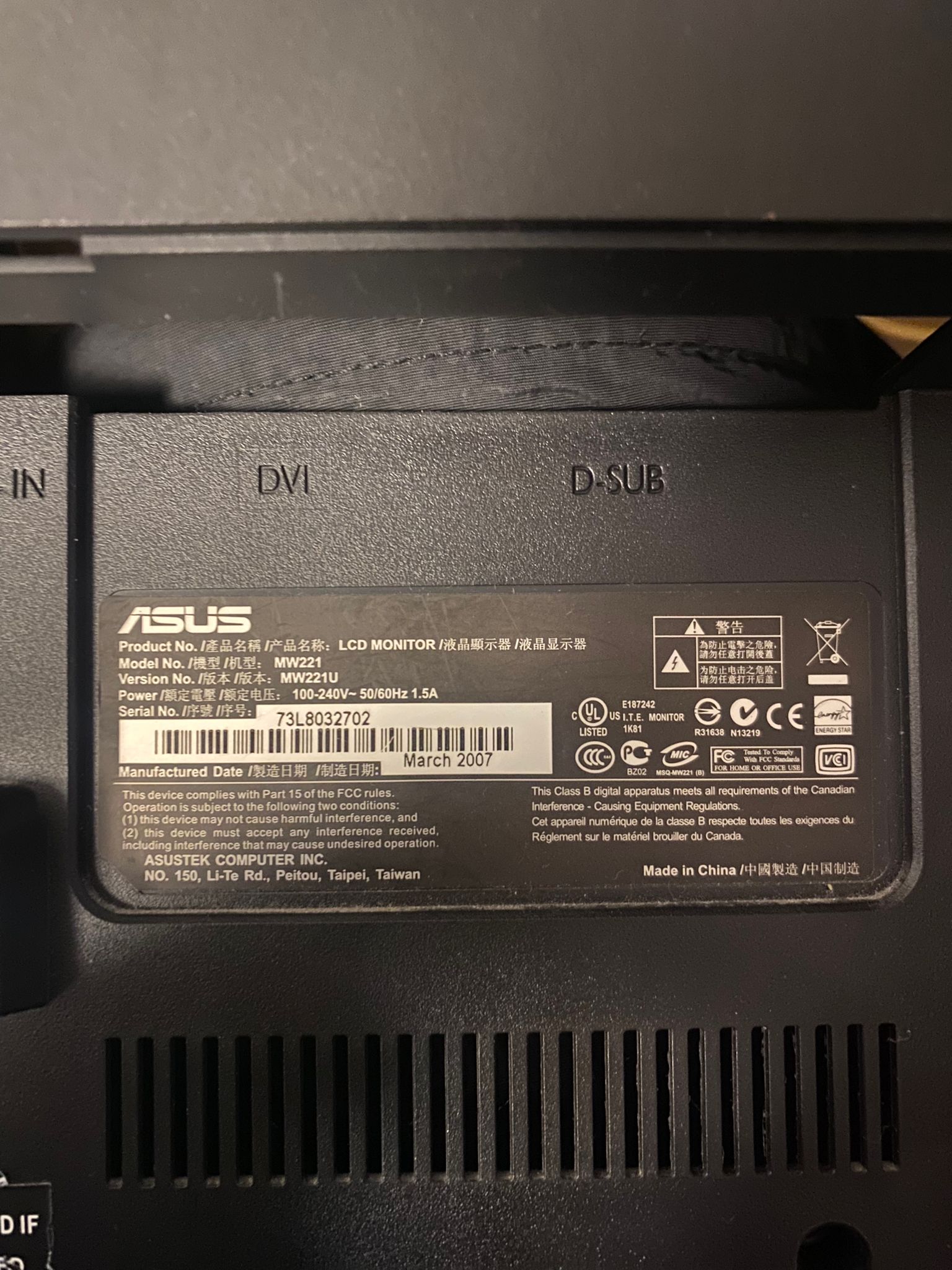 habe einen alten ASUS LCD Monitor (MW221U)(Seriennum.: 73L8032702)