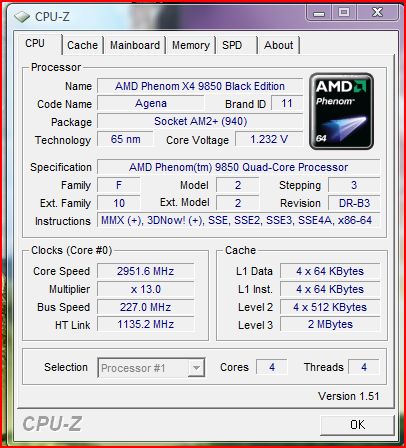 Sein Rechner ist fast identisch wie meiner, nur dass dort zwei andere Grafikkarten drinne sind, nämlich 2 x XFX 8800 GT XT, Board ist dasselbe, CPU bei ihm ist ein Phenom 9950, der mit 2,9 GHz läuft, Ram auch 4 GB DDR2-1066.
