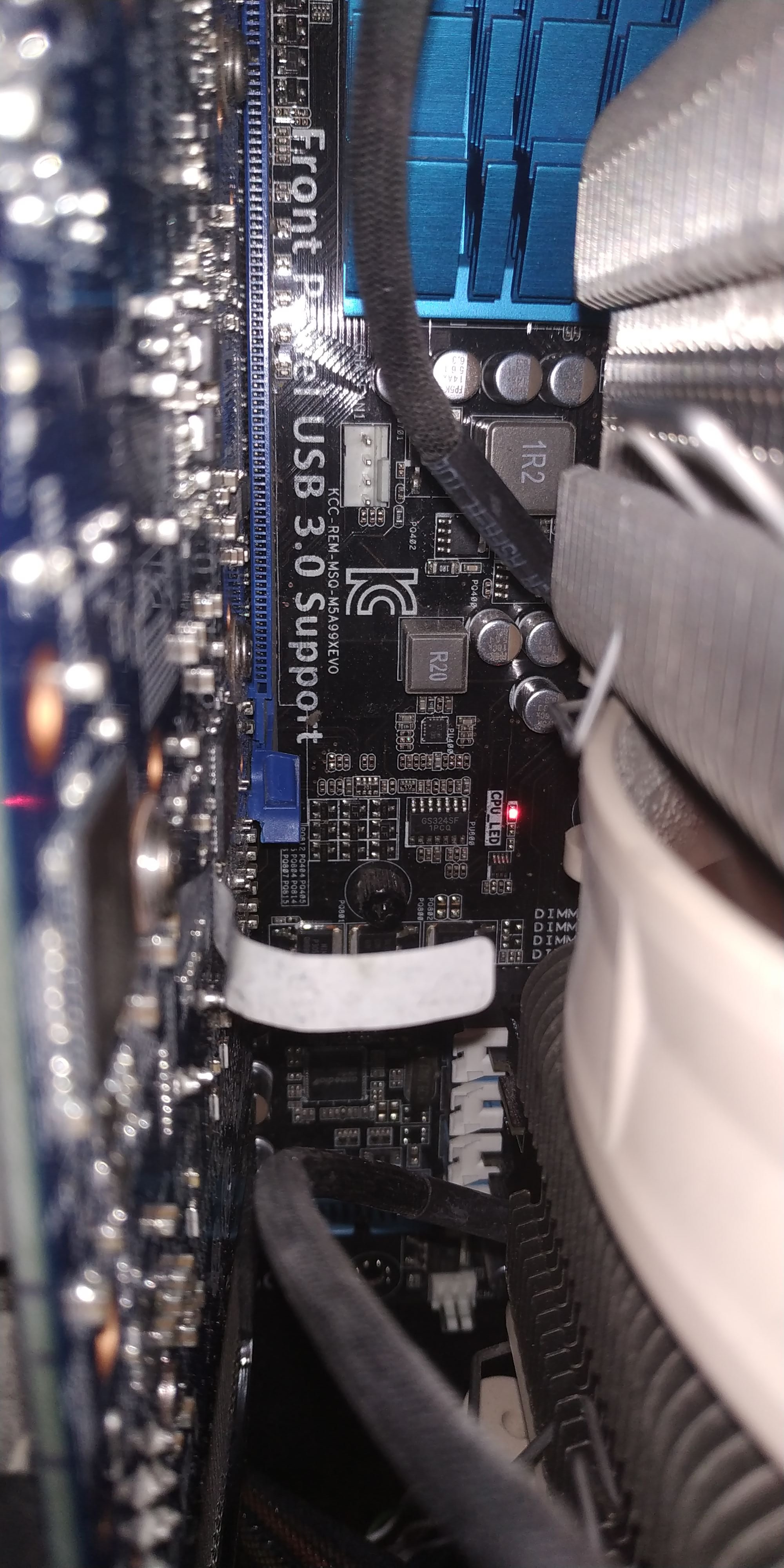 Auf dem Board Leuchtet die CPU Led dauerhaft rot, dies deutet wohl drauf hin das irgend was mit der CPU nicht stimmt, der Ram (laut Youtube ect) ist ok da die rote Led für den Ram nur ein paar mal blinkt und dann erlöscht.
