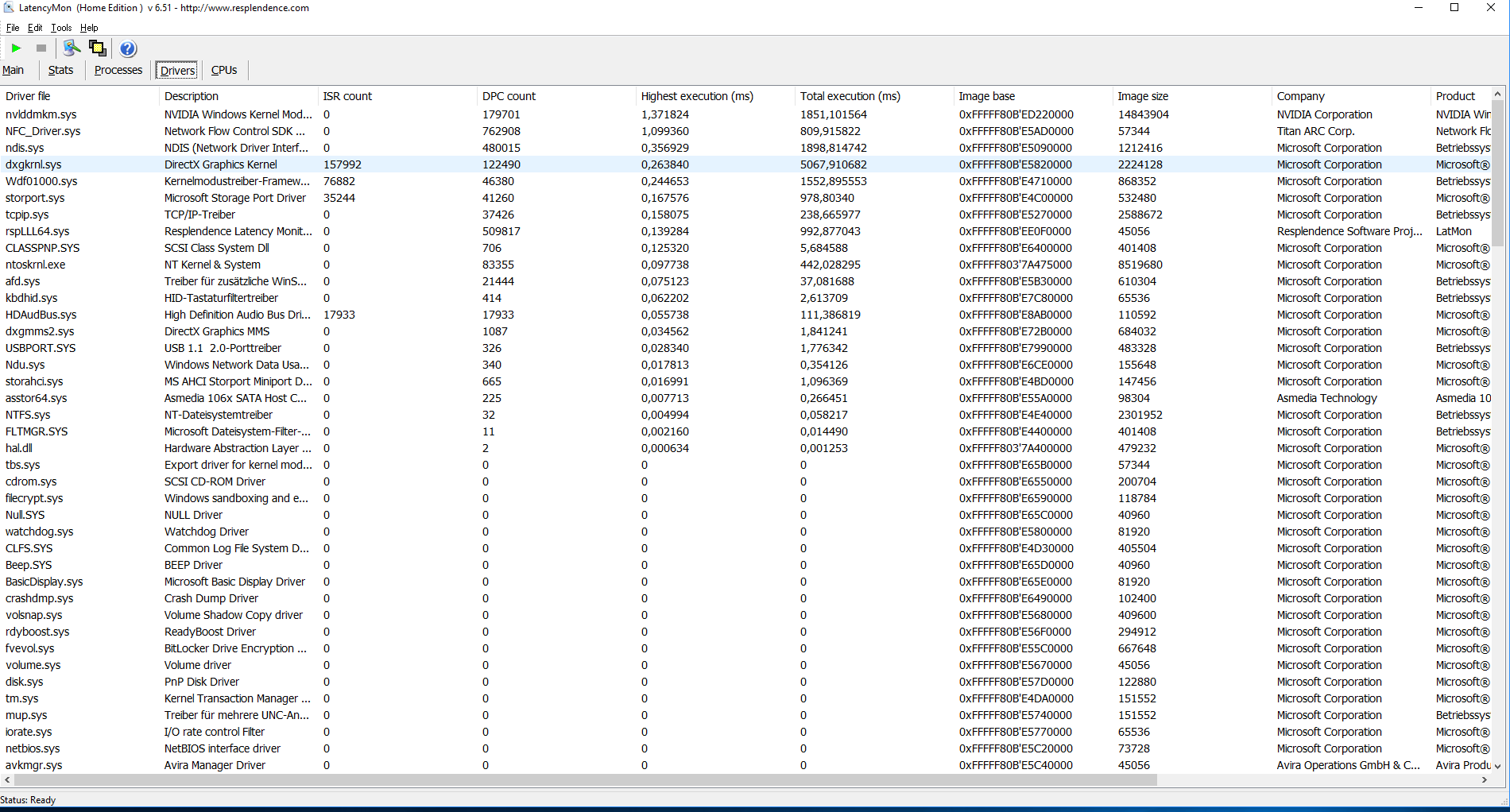 Driver with highest ISR total time: dxgkrnl.sys - DirectX Graphics Kernel, Microsoft Corporation