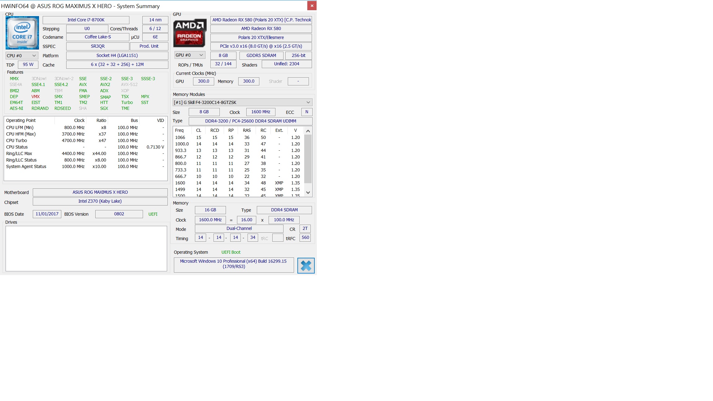 - Memory 2x G.Skill TridentZ DDR4 3200C14D-16GTZSK CL14-14-14-34 8GB