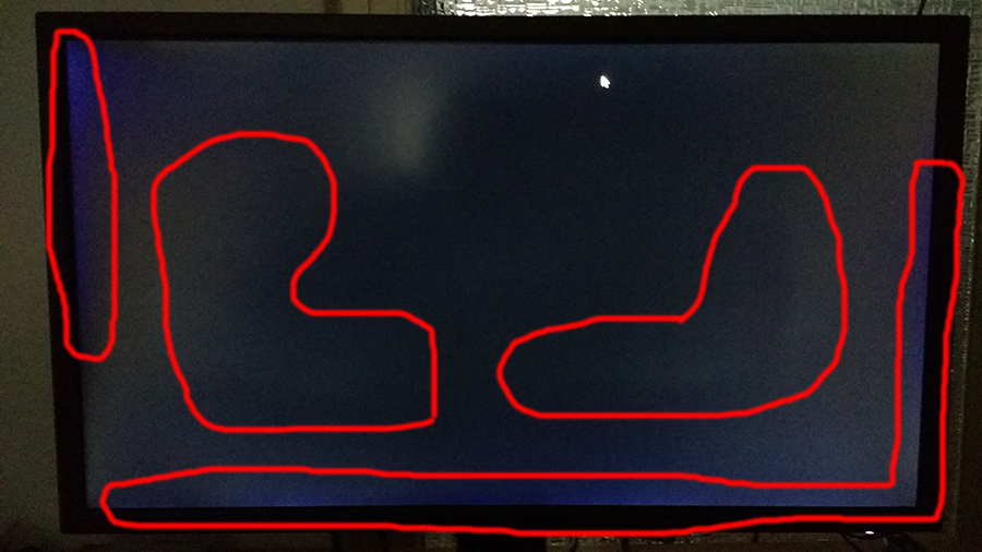 Bei der PS 4 Pro war es mir in dunklen Spielszenen aufgefallen, weniger der Monitor Randbereich als der mittlere Bereich mit den beiden Abschnitten - ich würde diese mal als Klammern beschreiben - als Laie.