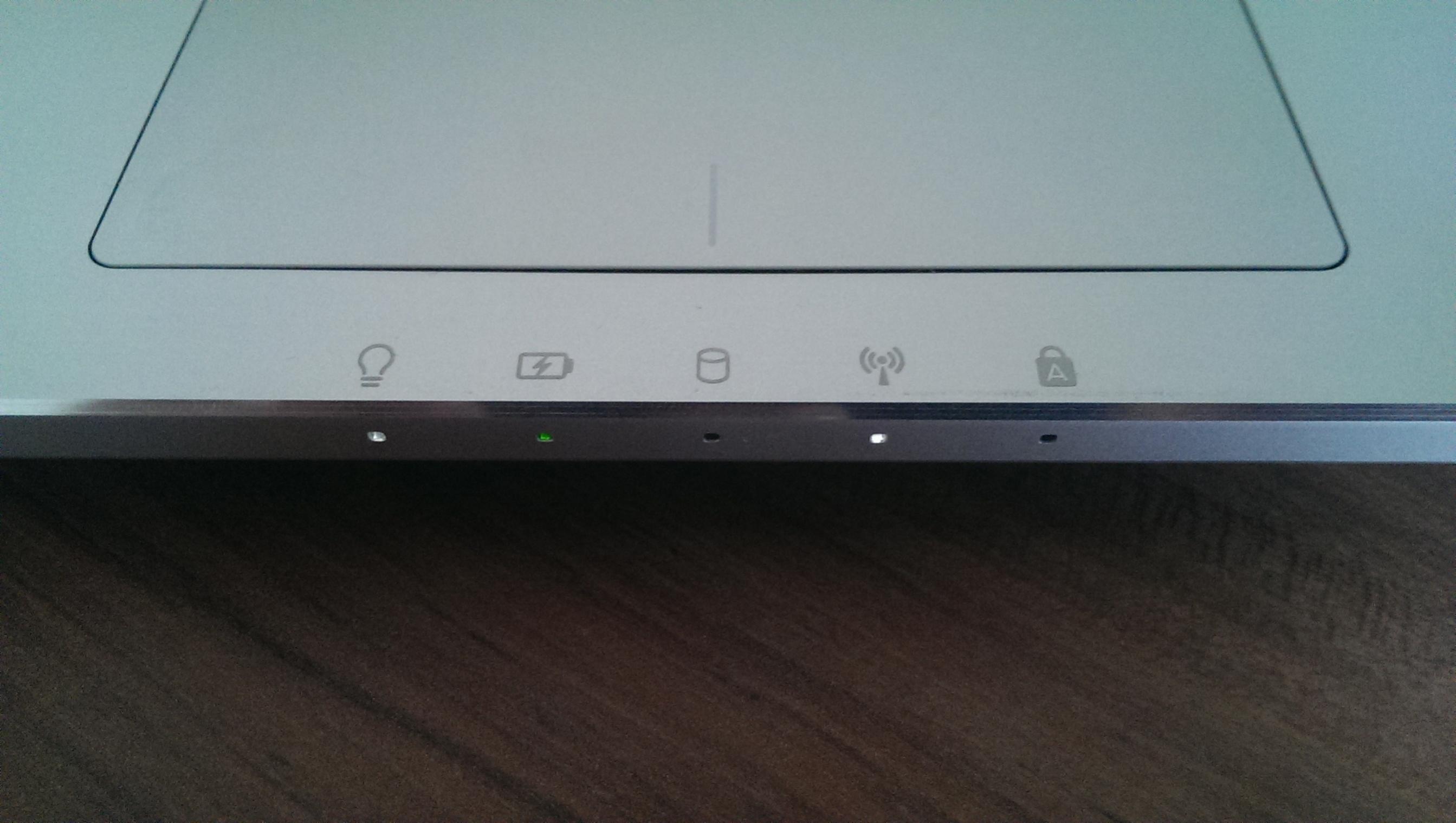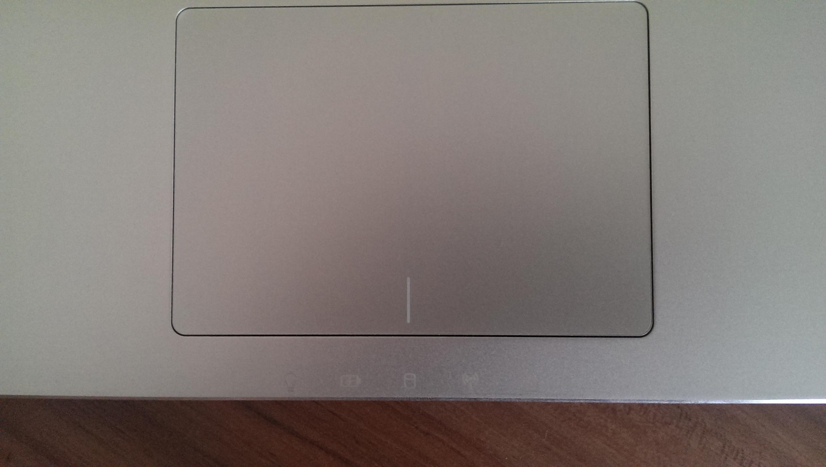 Die Oberfläche um Tastatur und Touchpad herum besteht aus silbernem Aluminium und einem von den vorherigen Modellen bekanntes Punktmuster welches jeweils von den zwei Knöpfen ausgeht, die sich über dem rechten und linken Rand der Tastatur befinden.