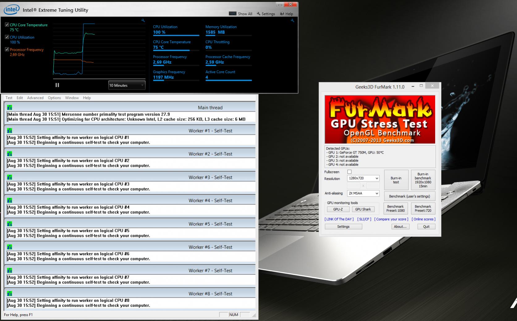 Im Grunde reicht es wenn ihr einmal Prime95 und Furmark mit ThrottleStop aktiviert laufen lasst und seht wo sich die Temperaturen einpendeln.