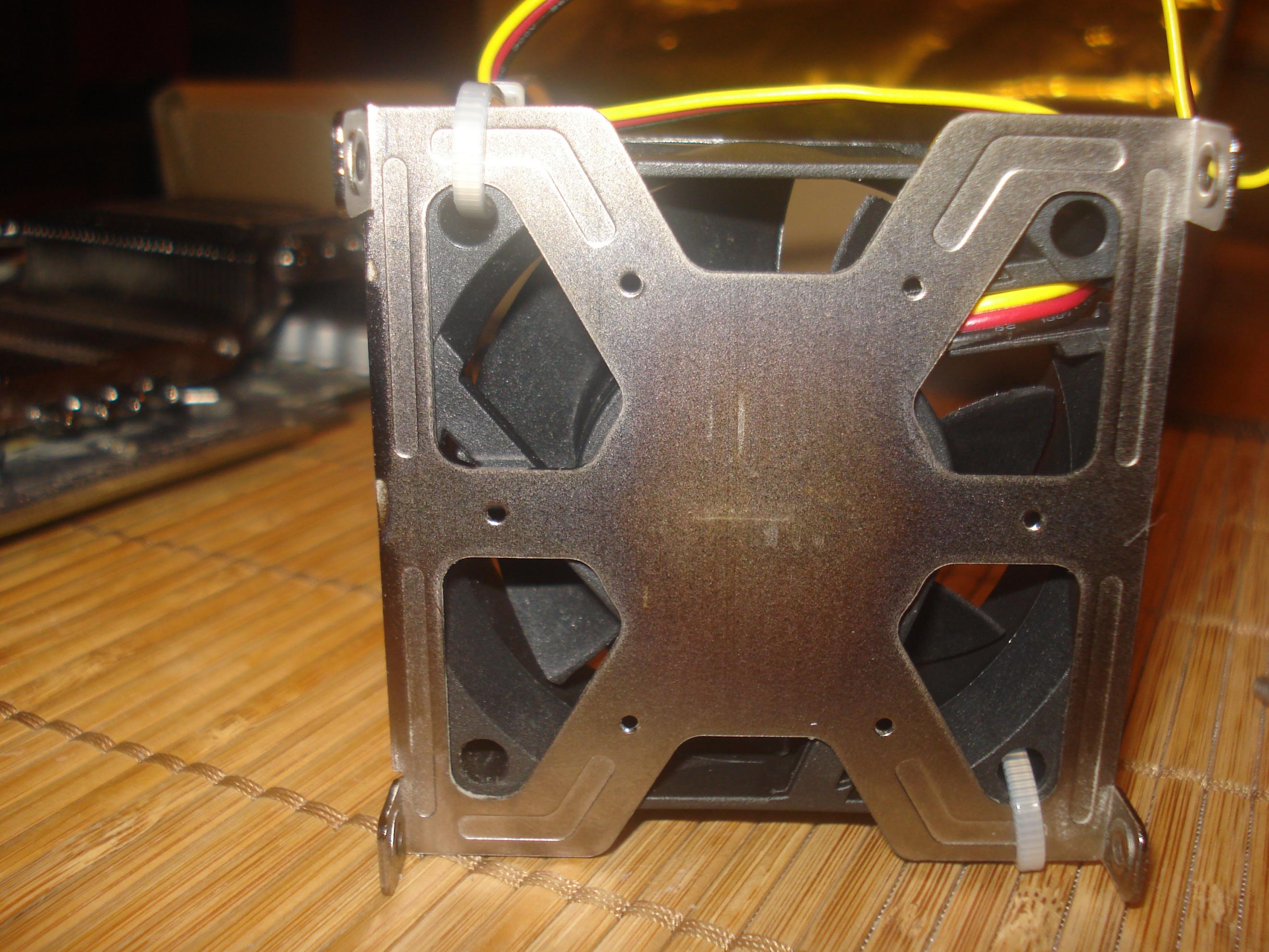Schon eine Idee habe ich ausprobiert: es wurde ein Adapter 3-pin klein 3-pin groß hergestellt und Lüfter Sharkoon Power (4000U/min) verwendet (). Der nahm sogar Steuersignal von Grafikkarte Anschluss (3-pin klein) auf aber viel zu laut gewesen (sogar nicht auf maximalen Touren), kühlt das Ding natürlich super!