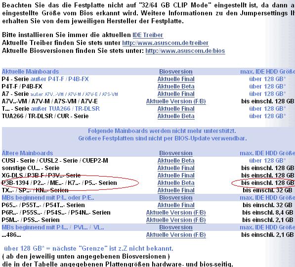 Gestern wollte ich eine neue Platte für den Fileserver einbauen, aber irgenwie erkennt es meine neue 80GB Seagate Platte nicht? Kann es darin liegen das mein Mainboard keine grösseren Platten erkennt? Es ist ein P III mit 500MHZ.