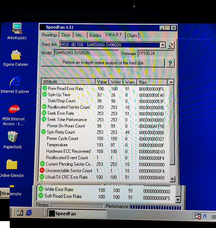 Die Platte ist etwa fünf Jahre jünger als das Board (siehe Bild), da wurde S.M.A.R.T. schon bald zehn Jahre lang von sämtlichen HDD-Herstellern unterstützt.