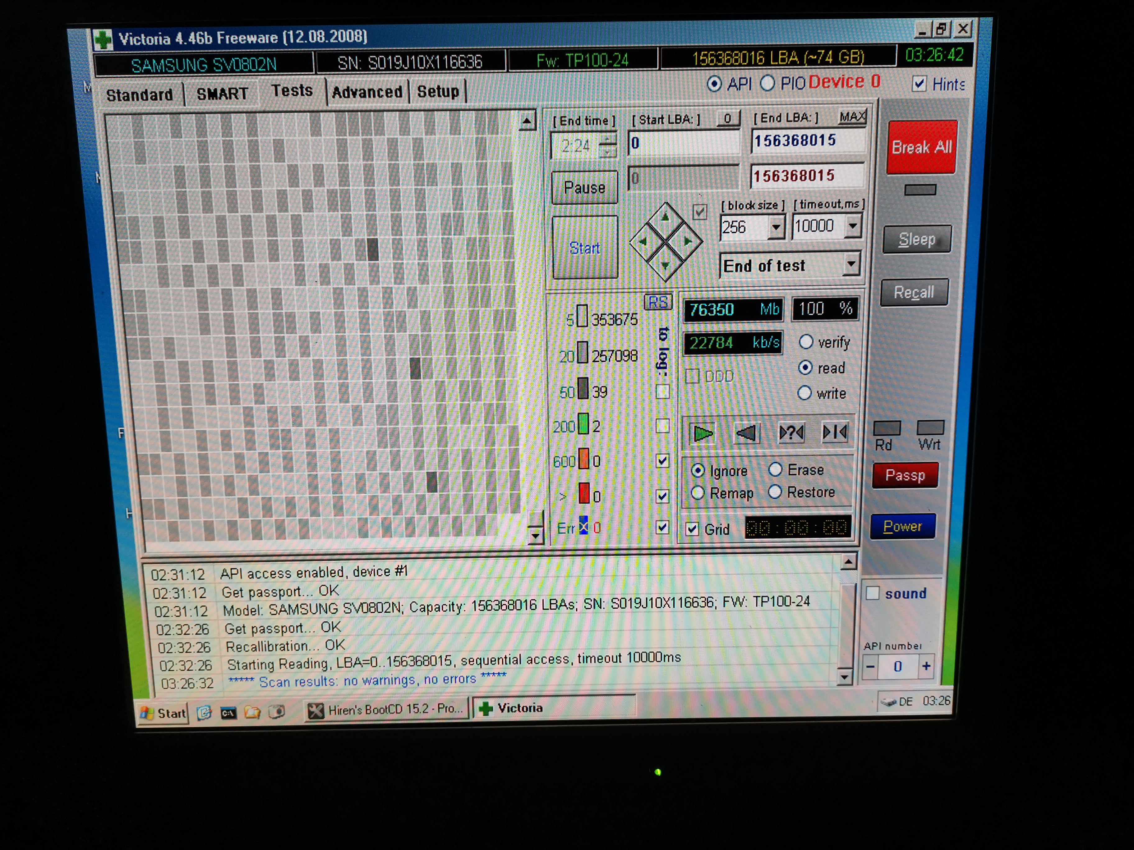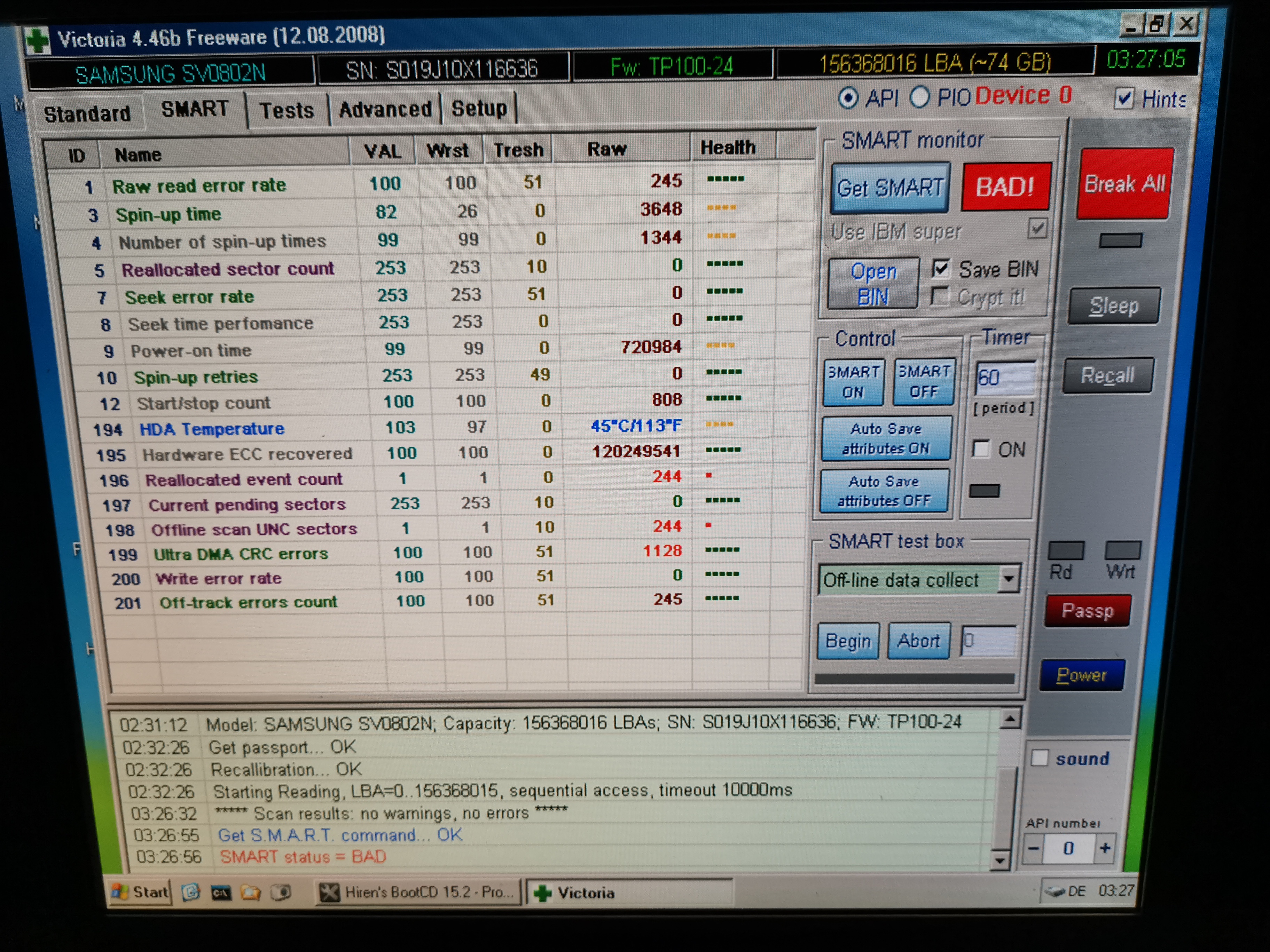 Spekulation hilft jetzt auch nichts. BTW neu zugewiesene Sektoren sind ja schonmal ein beträchtlicher Schaden...so eine Platte würde nicht mehr für wichtige Daten nehmen.