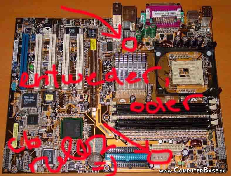 Hi Leute ich habe ein mega Problem !!!!! Und zwar habe ich mir ein Asus PE Mobo gekauft (neu) Und habe es bei mir in meinem Computer eingebaut dazu habe ich ein P4 2.4b CPU Drauf Montiert und ein Orginal Intel Lüfter das Netzteil ist auch neu mit 420 watt von Levicom und einen DDR RAM von Samsung PC 2700 ich hatte schon alles einmal complett ausgetauscht zum test den Cpu den DDR ram das Netzteil einfach alles aber das ´Mobo will einfach nicht anspringen das power led auf dem board ist zwar grün aber es will nicht angehen habe ich da vieleicht was falsch gemacht ich habe bemerkt das auf dem board ein steckplatzt bei den anschlüssen wo hdd led und power led und ATX Power Switch das kenn ich ja alles aber was ist oder besser gesagt was heisst SMI Lead liegt es vieleicht daran habe ich da was übersehen bitte hilft mir ich währe euch sehr dankbar ciao