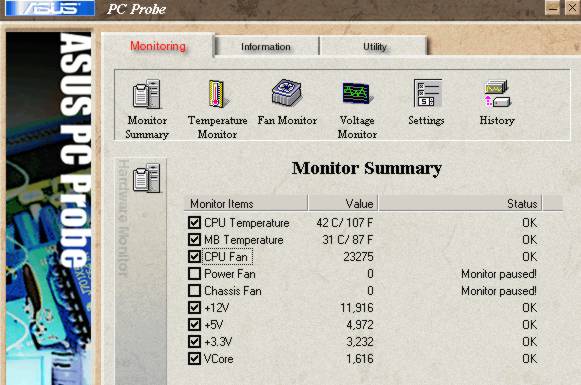 habe mit ASUS PROBE ,AIDA und SANDRA getestet