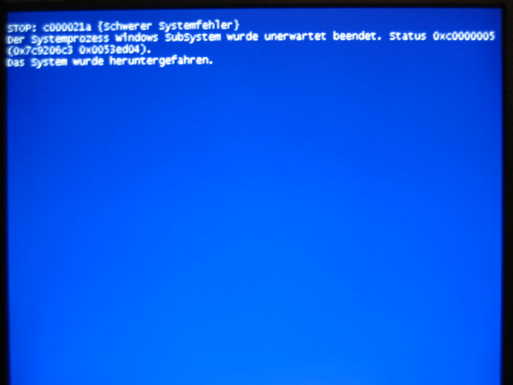 hab ein Problem mit meinem PC. Seit ich gestern die neuste BIOS-Version von der Asus-Website auf das Board aufgespielt habe, stürzt es mir öfter ab. Im folgenden Bluescreen steht dann, dass ein Windows Systemprozess unvorhergesehenerweise gestört wurde oder so. Auffällig ist, dass dies nur passiert, wenn ich mit irgendwelchen Programmen (z.B. core temp oder PC Probe von Asus) versuche die Kern-Temperatur der CPU auszulesen. Manchmal passiert dabei nichts, manchaml schmiert er mir aber sofort ab.
