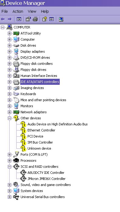 hab mal gegoogelt, mindestens 3 andere leute haben dasselbe problem gehabt, es hat aber (zumindest bei einem) geholfen, dass er die bios einstellungen von jMicron SATA/RATA Controller auf enabled und bei SATA Controller Mode auf IDE stellt.