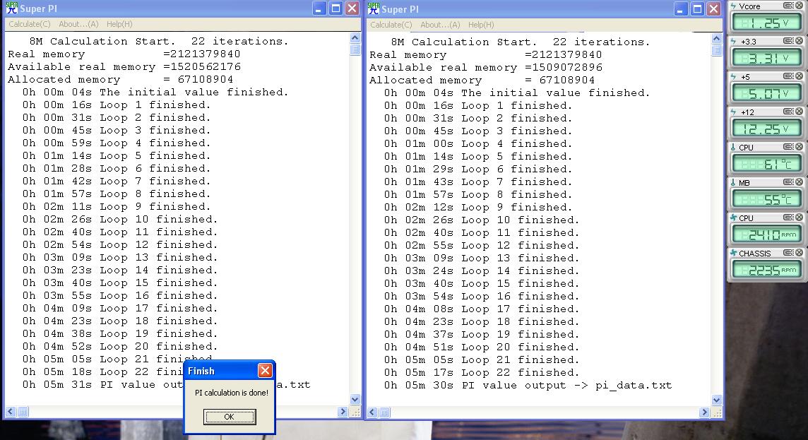 Seit heute nun läuft mein neues System. Nun habe ich das Problem das, dass ASUS Mainboard P5B VM einfach verdammt heiss wird. Das heist es wird im normal Zustand 50°C warm und unter volllast geht es sogar gegen die 55°C zu. Um zu schauen ob die Temperatur stimmt, habe ich mal den Passiv Kühler des MB berührt und mich verbrannt.