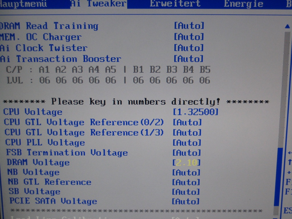 P5Q-E BIOS 1901 ( vor 2 Wochen P5KPL-SE kein Prob. mit 3,4GHz, MB nur im Arsch - Haarriss )