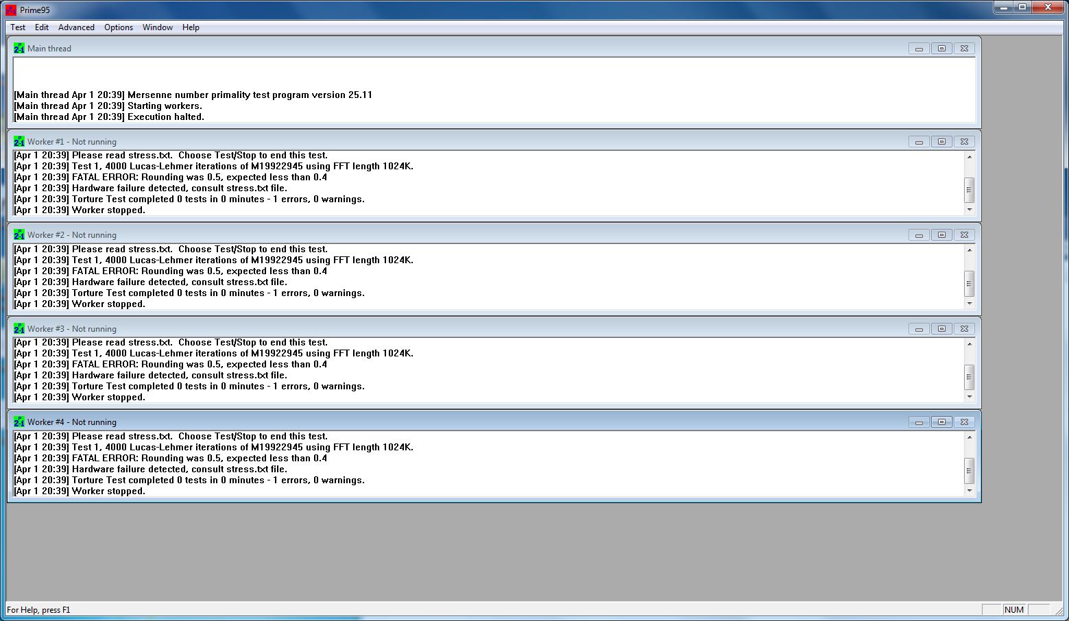 Ram Voltage habe ich auf 2,1V gestellt. Ich stelle jetzt nochmal ein Screenshot von Prime hoch, nach nicht mal 5 Sekunden taucht folgender Fehler bei allen 4 Workern auf: