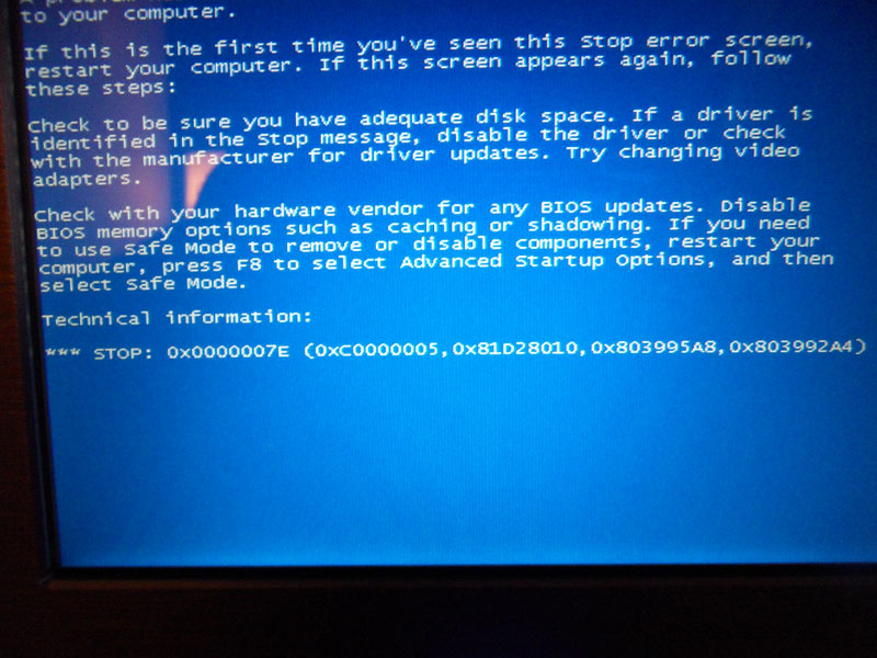 sobald der rechner 3-4 std. aus war und ich den rechner hochfahre erhalte ich einen bluescreen mit 0x00000....7E fehler. schalte ich den rechner aus und direkt wieder ein läuft alles.